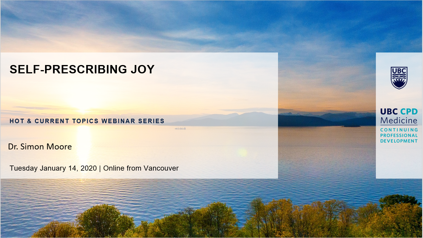 Jan 14, 2020: Hot & Current Topic: Self-Prescribing Joy—Audio Only, Dr. Simon Moore