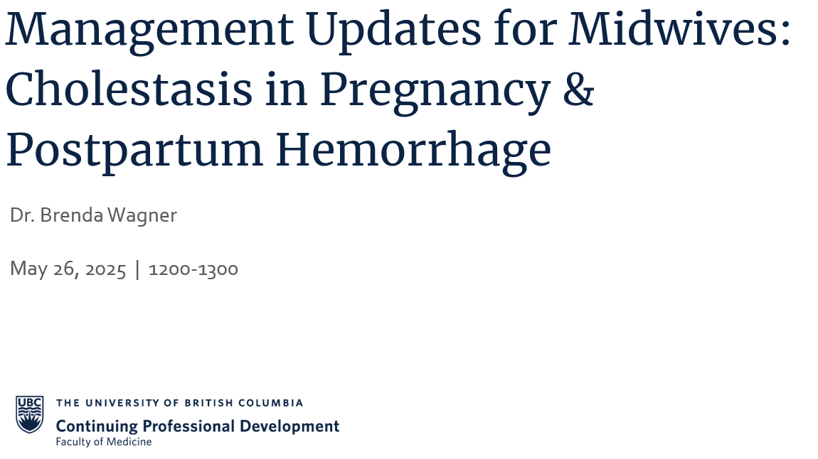 Join us for this online educational session where a highly experienced and knowledgeable specialist will discuss management updates for Midwives (specifically, cholestasis and postpartum hemorrhage).