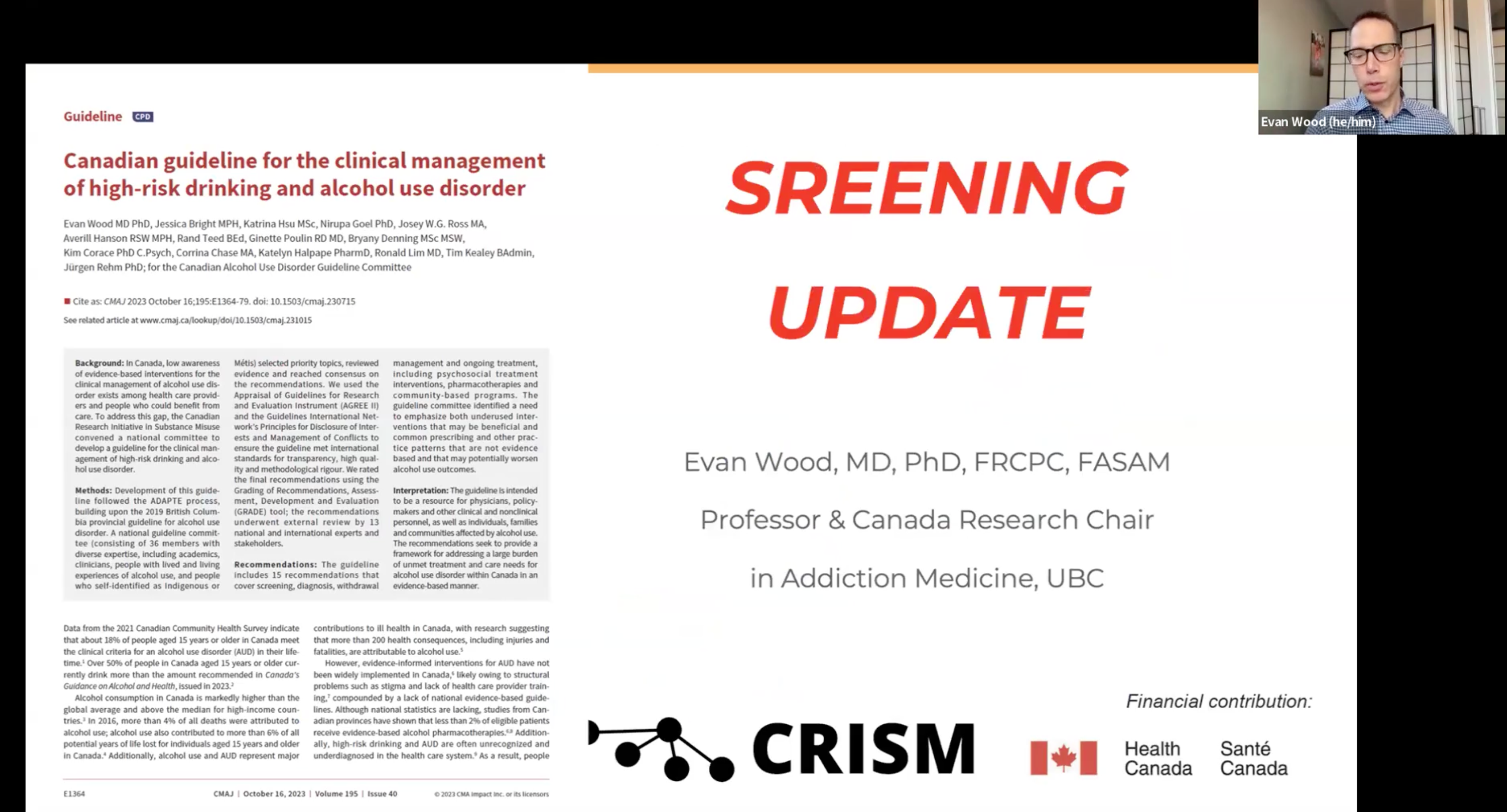 Nov. 19, 2025: Latest Recommendations from the Canadian National Guideline on High Risk Drinking and Alcohol Use Disorder by Dr. Evan Wood