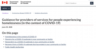 Government of Canada Guidance for Providers of Services for People Experiencing Homelessness (In the Context of COVID-19)