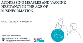 TUESDAY May 27, 2025 Brittany Deeter, Devon Greyson, Dr. Jia Hu, Dr. Alastair McAlpine, Michelle Takeuchi, Dr. Christie Newton (Moderator) Overview: This session explores the epidemiology and implications of measles outbreaks, how misinformation influences patient beliefs and behavior, and provides practical strategies for navigating vaccine conversations in clinical settings. Additional Resources: May 27 Webinar Resources May 27 webinar Presentation Slides Poster: Prevent Measles (BCCDC)